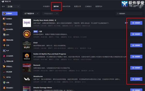 海量插件自由选择安装,同时支持正式服以及怀旧服!