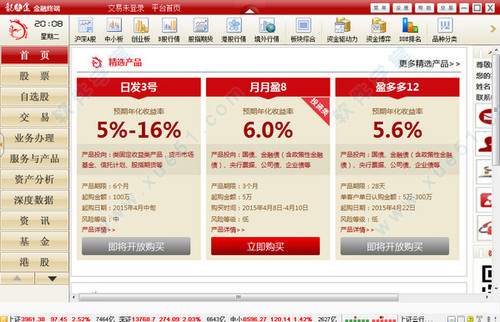 2、产品丰富含括一般账户类及投资资询类服务产品,券商理财产品,代销基金产品,代销信托产品及其它金融产品。