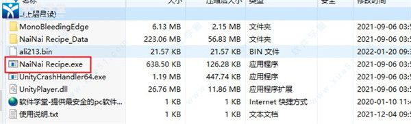 1、在软件学堂下载奶奶的菜谱中文版游戏压缩包,并解压打开“NaiNai Recipe.exe”文件。