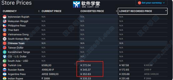 游戏目前锁国区,目前低价区里面土耳其区价格最便宜只要272元,其次是俄区345元,另外阿区价格也只要352元。