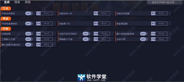 地心护核者修改器3dm版,使用这款修改器可以对其游戏中的相关属性和数据进行修改,例如当前生命+50、饱食度+50、快速挖掘、工具耐久不减、最大伤害等十一项修改功能,可以帮助玩家大大降低游戏中的难度,从而提高玩家自身的游戏体验,对此有需要的小伙伴可以来下载试试!