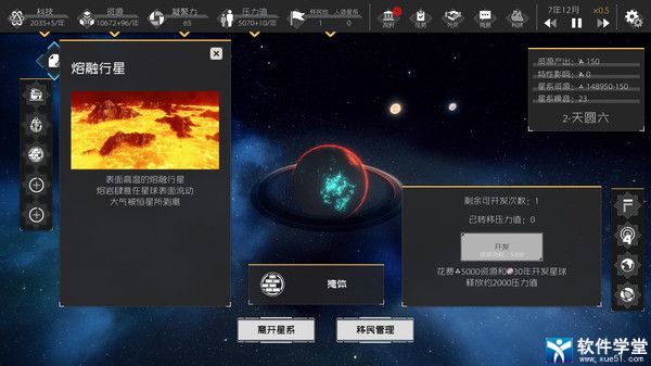 2、发送探测卫星,逐步探索周围未知区域;建设军事基地、航天港等设施,进行部队撤离和移民扩张,如何规划资源配置和科技方向至关重要。在发展、扩张和战争的过程中,会伴随着资源枯竭、凝聚力降低、舆论压力增大的问题,如果这些问题失控,你的文明就会从内部分崩离析。如何平衡各方面,就看玩家的智慧了。