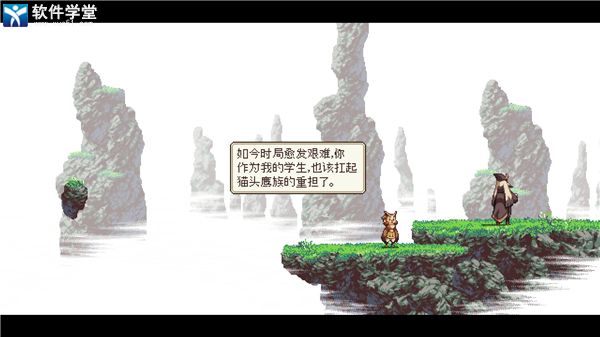 离开自己的小屋后,来到一个浮空岛屿组成的小镇,名叫Vellie。老师Asio把正在四处张望的Otus叫了上去,并且告诫他,他们今天的任务就是负责守望Vellie。最近有报告显示海盗正在附近活动。如果Otus发现了一些异常的现象,需要及时找他或者守卫回报。
