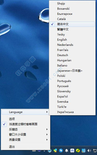 2、在任务栏找到winflip图标,鼠标右键选择Language可以设置中文语言;