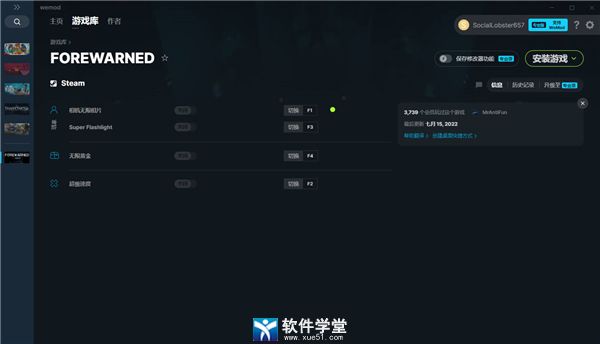 Forewarned修改器MrAntiFun版辅助工具就可以让大家不用担心以上的问题,四项无限的功能保证玩家能够安全完成探索,全屋照明的无限手电筒还可以解决木乃伊突袭的恐怖场景,开启超级速度木乃伊都追不上你,更别说还有这无限的拍照相片,感兴趣的朋友可以来本站获取该修改器的应用资源。