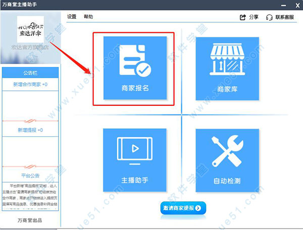 万商堂主播助手是一款专为淘宝主播研发的平台,分为商家版和主播版。从商品ERP提报到直播辅助工具再到直播数据,实现全流程智能化,可以大大的提升工作效率与业绩。软件一键式操作很简便,三步就到位很智能,账号掉线自动重登确保推广顺畅,如果你不关机、不拔网线,他绝不罢工,并且万商堂主播助手全面兼容7种系统,支持优惠券即时推送,商品一键上架,方便快捷,为您实现全流程智能化服务,大大提升工作效率和业绩,有需要的淘宝主播们欢迎来本站下载使用。