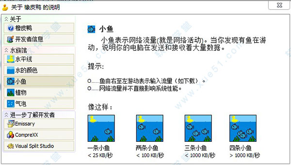 小鱼表示网络流量(就是网络活动),当你发现鱼在游动,说明你的电脑在发送和接收着大量数据