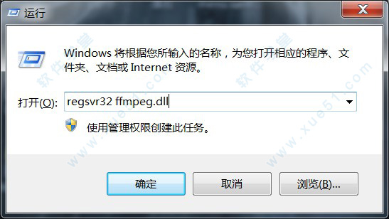 4、点击开始菜单-运行-输入内容“regsvr32 ffmpeg.dll”后,回车之后就可以解决