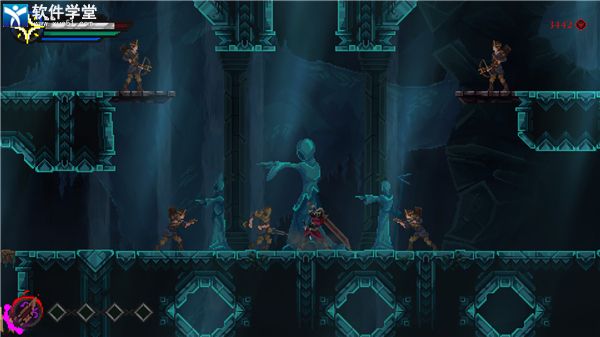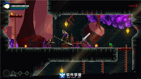 地图方面,本作是一个典型但又比较简单的恶魔城式结构。各区域有交错穿行的复式设计,但重复利用率不高,属于“过去了就过去了”的类型。我比较喜欢后期那三个平行难度的自由选择区域,给了我一些遐想。每个区域也都有一个看门Boss。