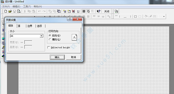 2.可以在文件-页面设置更改纸张大小,进纸原,边界设置