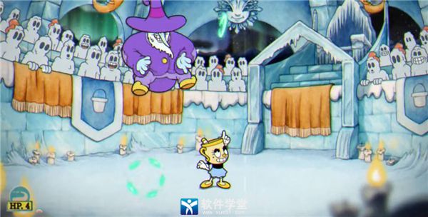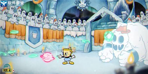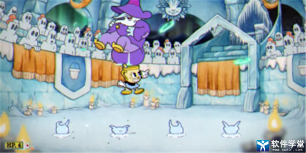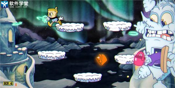 3、二阶段BOSS化身雪人,使用二段跳躲避雪人翻滚。