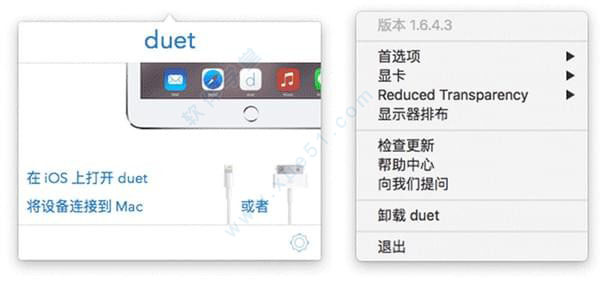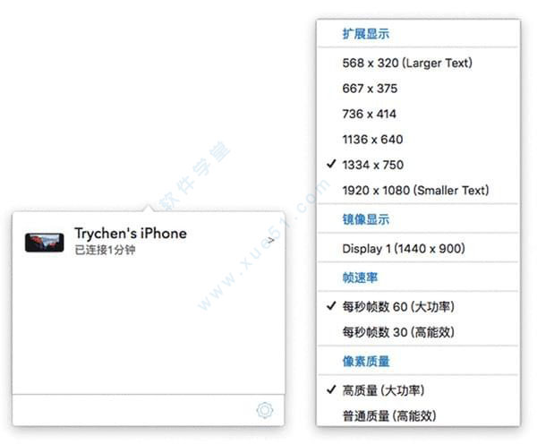 在 iOS 设备上以及电脑端都安装好软件,使用 USB 数据线连接起来即可使用。用户可以根据自己需要选择分辨率、显示器排布方式、渲染使用的显卡、是否开启 Retina 等功能。