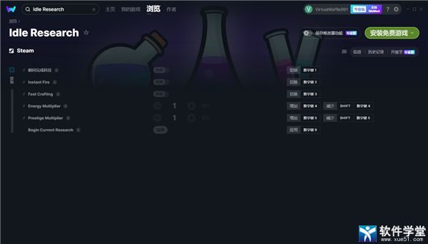 放置研究修改器MrAntiFun版是一款非常优秀的修改器,其每一项功能都是制作者精心为游戏放置研究打造的,在游戏中玩家可以靠着这些功能获得非常多的便利,只要有着这款修改器的帮助,我们想要通关放置研究这款修改器就变得轻而易举了!在游戏中,我们不管遇到什么问题都可以使用这款修改器进行解决,就比如游戏中一直令人困恼的能力获取,因为靠自己获取能量的速度是非常慢的,但是现在只要我们开启这款修改器的增加能量获取功能,之后再获取能量就变得特别轻松了,一会儿就可以获取到大量的能量!这款修改器除了可以增加能量获取之外,还可以增加声望的获取,并且不止可以增加,还都可以减少,非常的人性化!喜欢这款放置研究修改器MrAntiFun版的小伙伴快来下载吧!