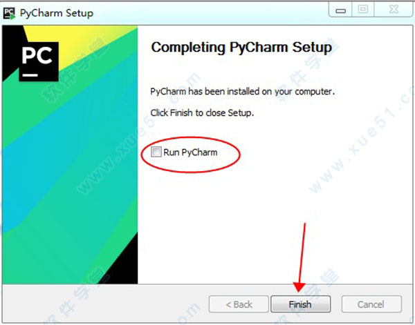 1、pycharm 2018.2安装完成后,先不要运行软件,去掉方框中的勾“√”,点击“Finish”即可