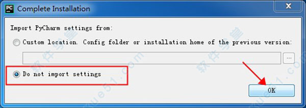 4、在桌面上打开的pycharm 2018.2软件,选择“Do not import settings”,然后点击“OK”,根据一步步提示操作打开软件