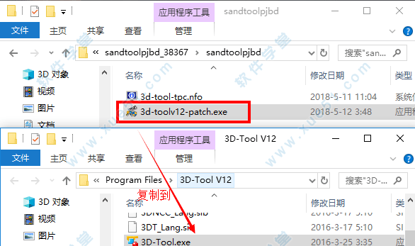 4、打开数据包中的“Crack”文件夹,将里面的文件复制到软件的安装目录下,默认安装目录:“C:\Program Files\3D-Tool V12”。