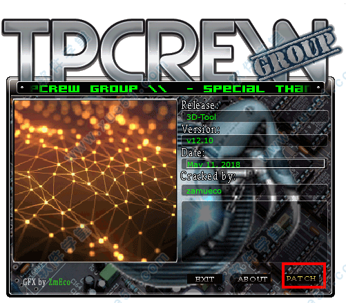 5、运行破解程序“3d-toolv12-patch.exe”点击patch,即可完成破解。