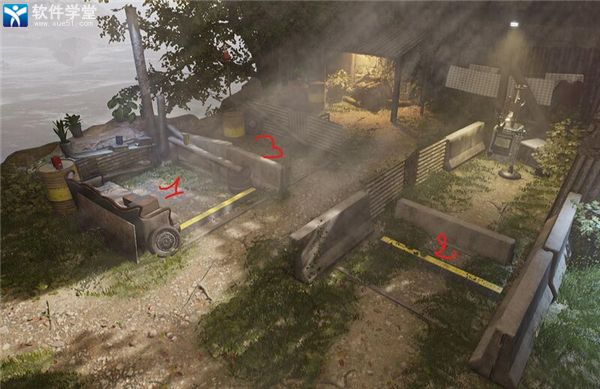 拿到枪后,您可以下到训练区并开始射击罐头。