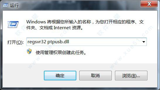 4、点击开始菜单-运行-输入内容“regsvr32 ptpusb.dll”后,回车之后就可以解决了