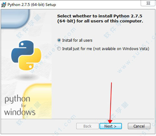 4、安装到这一步,跳出python 2.7.5安装界面,点击“Next”进行安装,这是clarisse ifx 3.6 sp4软件必装的组件