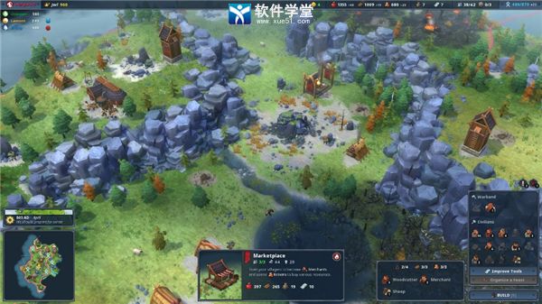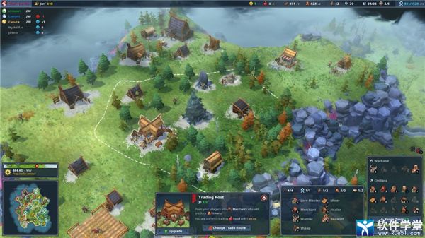 市场(80木,伐木工小屋)——将村民训练为商人,也可以花费克朗购买各种资源