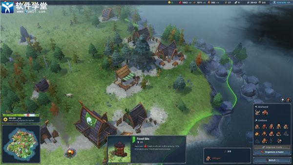食物储存仓(100木,伐木工小屋)——此区域的食物产量提升10%。提升食物最大储存量
