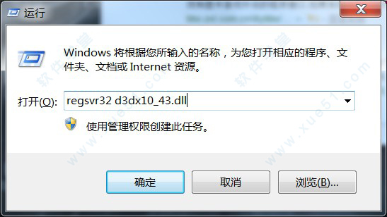 4、点击开始菜单-运行-输入内容“regsvr32 d3dx10_43.dll”后,回车之后就可以解决了