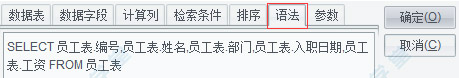 进入SQL编辑器后,可以根据需要切换不同的Tab页,选择要查询的数据表、数据字段、检索条件等,切换到语法Tab页可以看到最终拼接好的SQL语句。当然也可以直接在这里写SQL语句,SQL语句执行返回的结果就是我们制作报表需要的数据集。