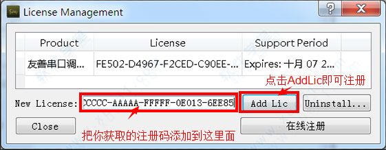 5、把你获取的注册码添加到这里面,然后点击“Add Lic”即可完成注册,点击之后关闭软件重新打开。