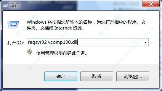 4、点击开始菜单-运行-输入内容“regsvr32 vcomp100.dll”后,回车之后就可以解决了