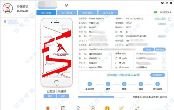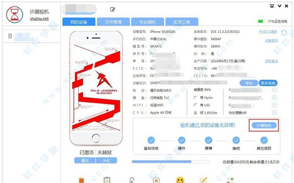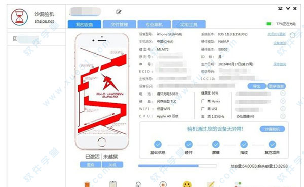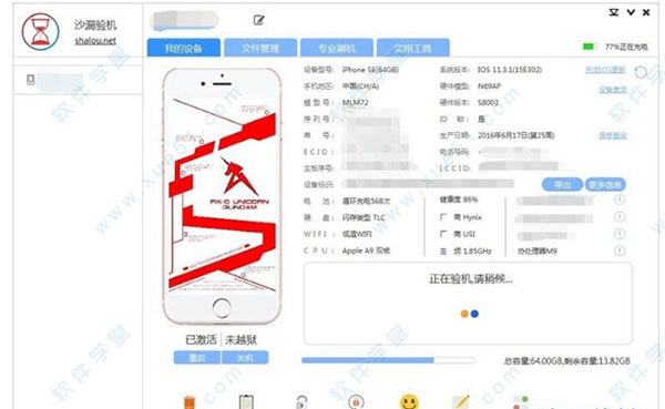 沙漏验机是一款功能强大、操作简单、使用方便的手机检验软件,是目前全球独创的验机神器,使用软件可以轻松对自己的手机进行检验,检验手机是否为正品,非常好用。它可以查看手机所有详细信息,例如手机序列号查询,是否激活、剩余空间、电池信息、手机序列号等内容,还可以清理手机空间。独创的验机功能,强大专业的刷机功能,设备颜色验机、底层指纹码和当前指纹码查看等强大功能,更多功能等你来发现。本站为用户提供