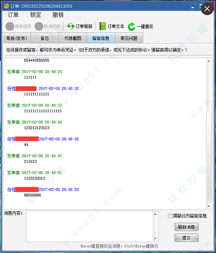 3、如何联系对方?答:已接手的订单,需要联系对方可以把情况在留言信息内说明,对方上线后可以查看到。