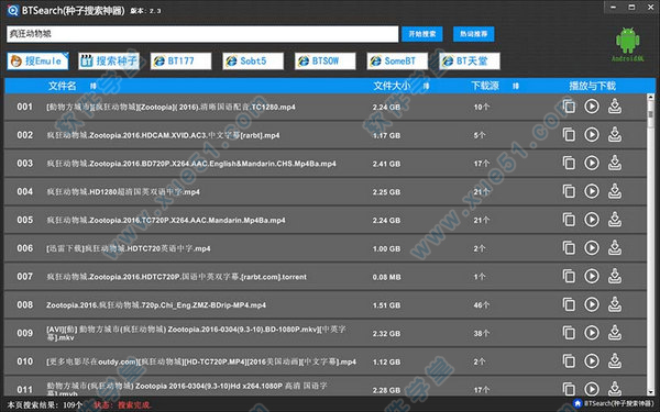 种子搜索神器,是一款完全免费的BT种子搜索器,支持3种搜索模式,BT种子磁力搜索,Emule服务器搜索,第3方磁力搜索网站搜索,搜索速度极快,每次可以搜索到几百个有效的链接,点击搜索结果可以直接进行在线云播,复制链接,或多线程下载软件无毒无捆绑,完全免费。欢迎喜欢的朋友到本站免费下载体验。