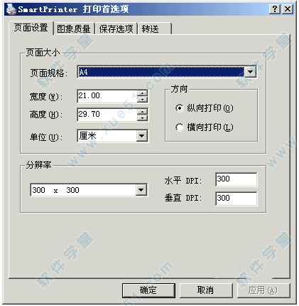 4、设置页面 (设定:纸张大小、分辨率等参数)。