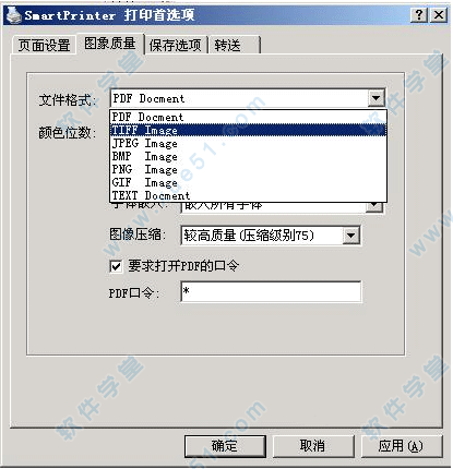 5、图象质量 (设定:文件输出类型、改文件格式的相关参数)。