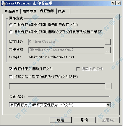 smartprinter是目前质量最高、速度最快的文档和图像转换工具,专为转换文件而研发,以运行稳定、转换速度快和图像质量高而著称,通过虚拟打印技术可以完美的将任意可打印文档转换成PDF、TIFF、JPEG,BMP、PNG、EMF、GIF、TXT等格式。同时他还可以轻松实现word转pdf,word转tiff等功能。本站提供
