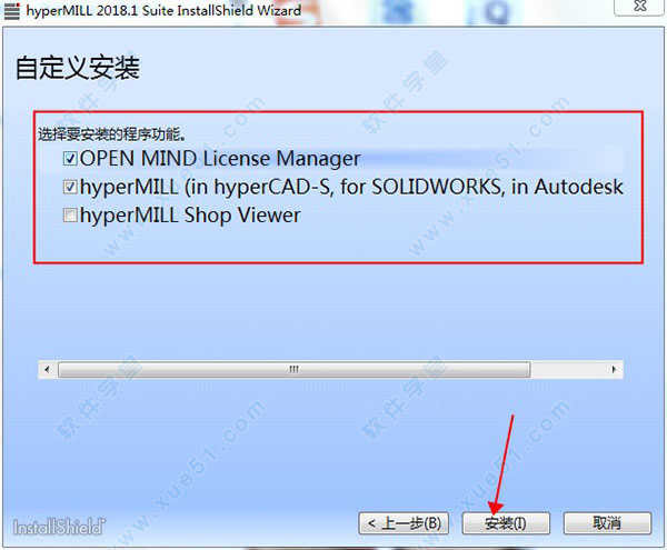 4、目的地文件夹,选择软件HyperMill2018.1安装目录,这里选择默认目录C:\Program Files\OPEN MIND,点击“下一步”