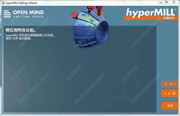 3、选择应用所选的设置,显示“软件的安装与初始配置已完成”点击“关闭”退出配置