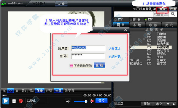 2、首先登录,在线收藏夹功能,无论何时何地轻松调出自己的伴奏。