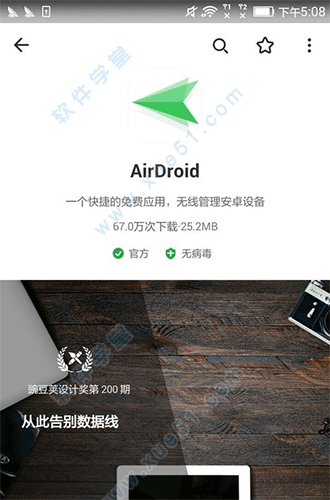 1、首先在安卓手机上下载安装“AirDroid”,可以去安卓各个市场下载