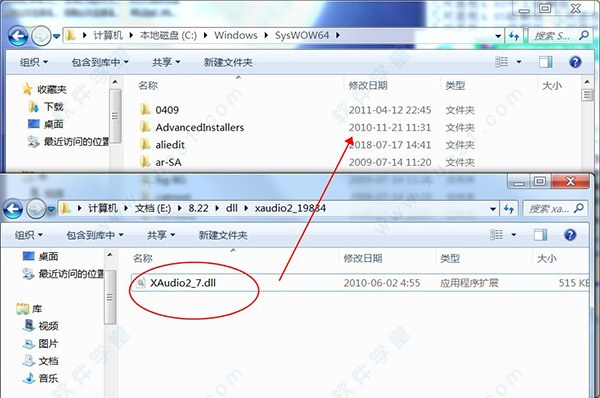 2、将文件“xaudio2_7.dll”复制到系统目录下