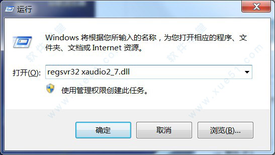 4、点击开始菜单-运行-输入内容“regsvr32 xaudio2_7.dll”后,回车之后就可以解决了