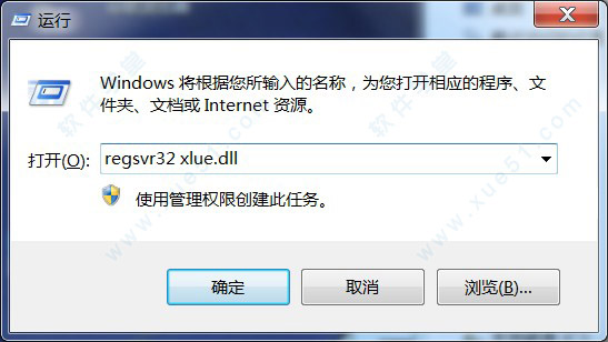 4、点击开始菜单-运行-输入内容“regsvr32 xlue.dll”后,回车之后就可以解决了