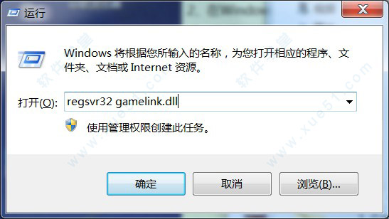 4、点击开始菜单-运行-输入内容“regsvr32 gamelink.dll”后,回车之后就可以解决了