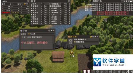 3、进去之后有了一个仓库,一个材料堆放地,小人会按照最短路线将资源送到仓库,修路可以加快行走速度,但是通常小人并不会老老实实走路。可以通过划区域采集的资源有三种,原木,石头,铁,铁看起来比石头黑一点。采集完小人会把它们搬到堆料。