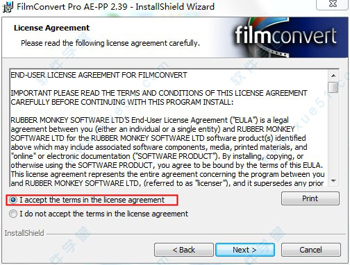 2、同意软件相关协议,选择“I accept the terms in the license agreement”