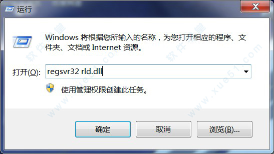 4、点击开始菜单-运行-输入内容“regsvr32 rld.dll”后,回车之后就可以解决了