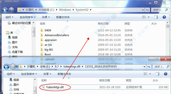 2、将文件“tokenmgr.dll”复制到系统目录下