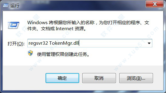 4、点击开始菜单-运行-输入内容“regsvr32 tokenmgr.dll”后,回车之后就可以解决了