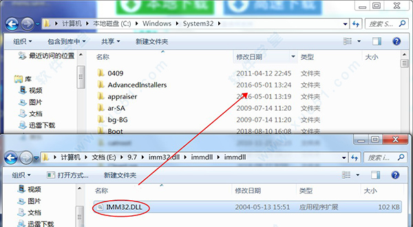 2、将文件“imm32.dll”复制到系统目录下
